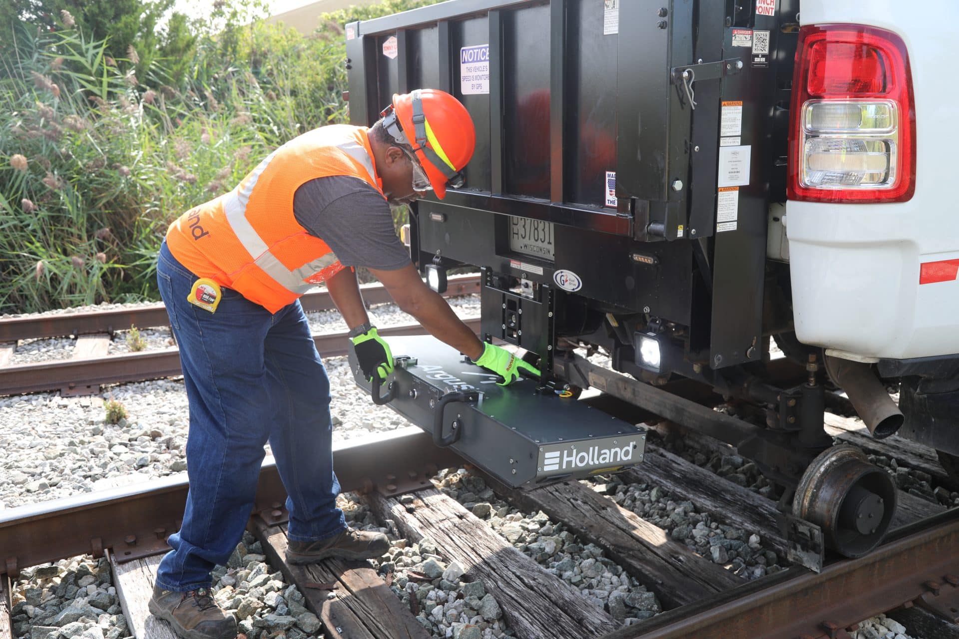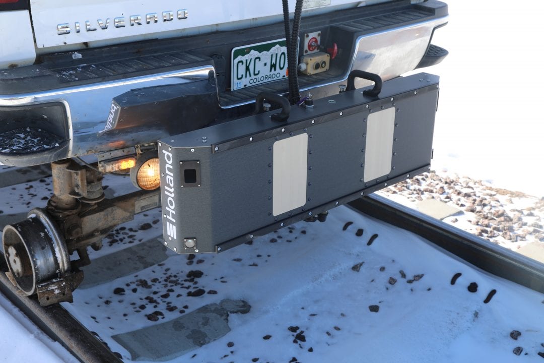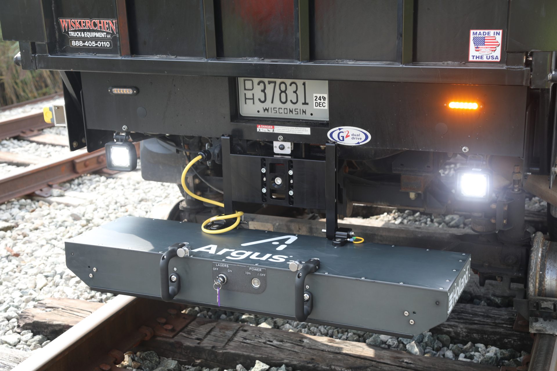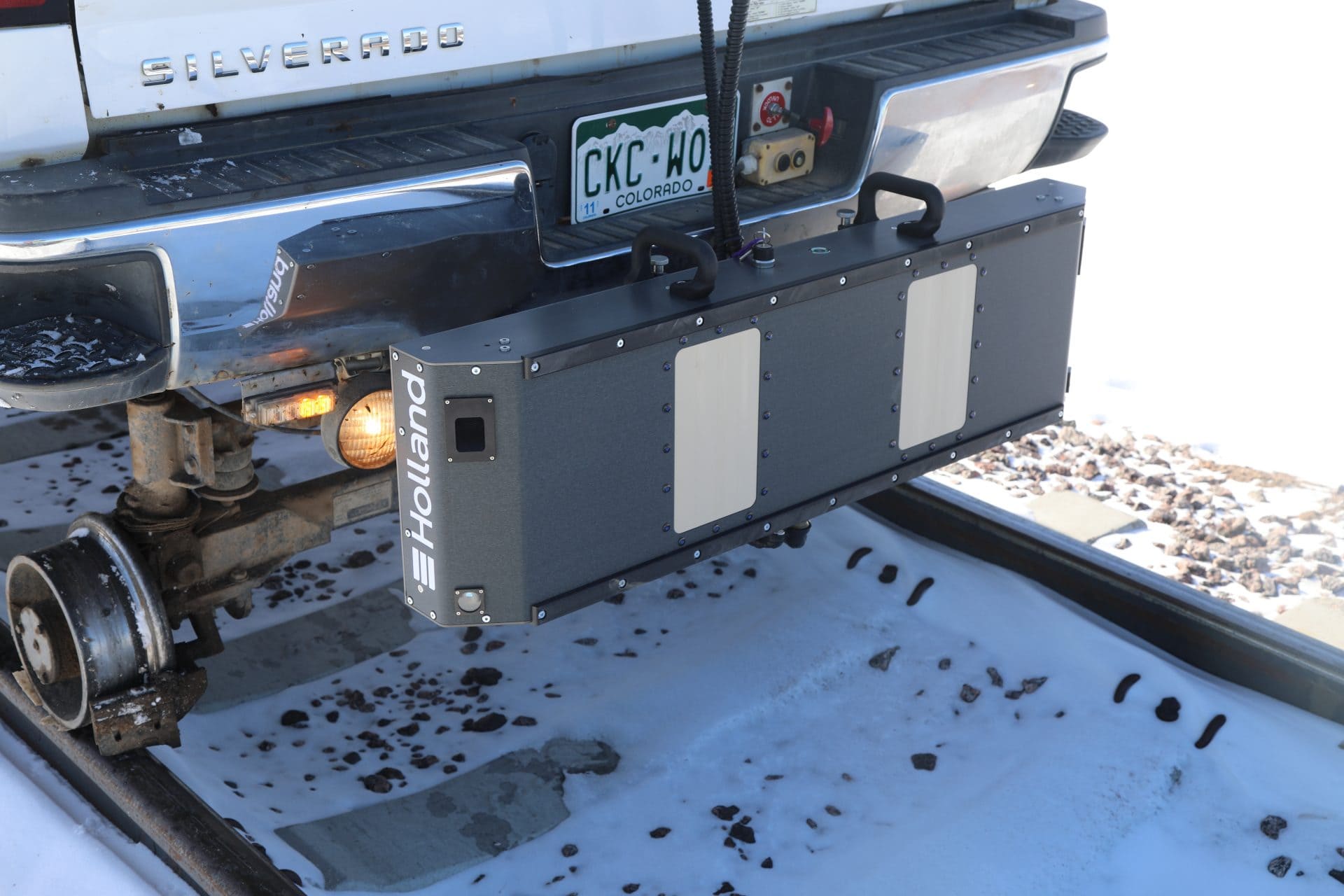 Holland’s Portable Inspection System is a lightweight, plug-and-play track measurement technology deployed from a conventional tow hitch receiver. Our adjustable hitch insert fits all standard hitches with no modifications. This feature eliminates the necessity of a dedicated hi-rail platform for the track measurement system. In other words, any available hi-rail platform with a hitch mount can be converted to an inspection vehicle. It can be operated by a single operator (weighs less than 50 lb.), deployed or removed within a minute, and stored and shipped with a luggage-size case. This system can be folded up for highway travel without disassembling from the hitch receiver and folded back down to return to track measurement without calibration. Our new and improved Argus 2.0 system is more resilient to harsh environmental conditions.
